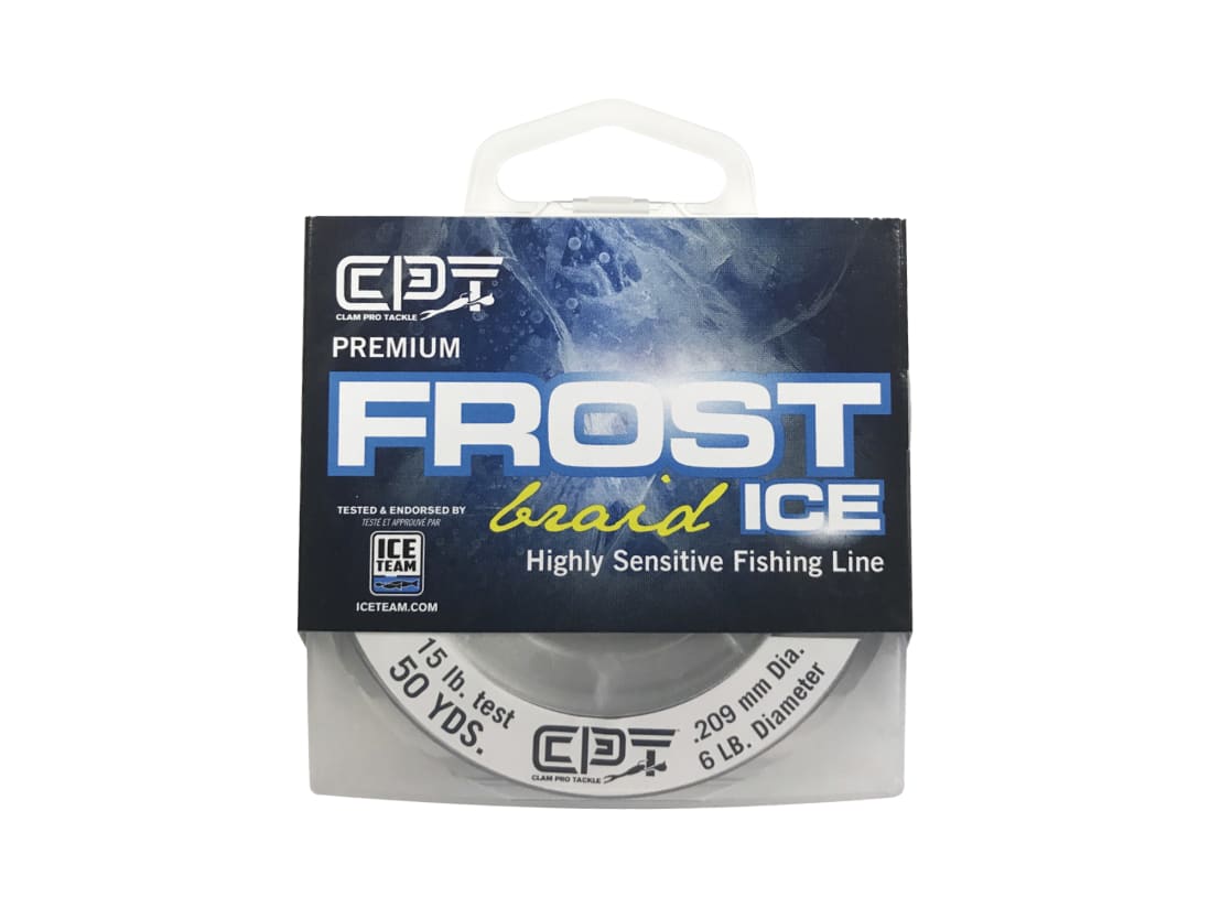 Clam Pro Tackle knows the rigors of ice fishing…Frost Ice Braided Line is designed by Sunline Co. specifically for the rigors of ice fishing. This professional class of braided line is highly abrasion resistant and contains virtually no stretch for better bite detection and a stronger hook set. Japanese-made to the strictest of tolerances, Frost Ice Line uses the highest quality raw materials available.