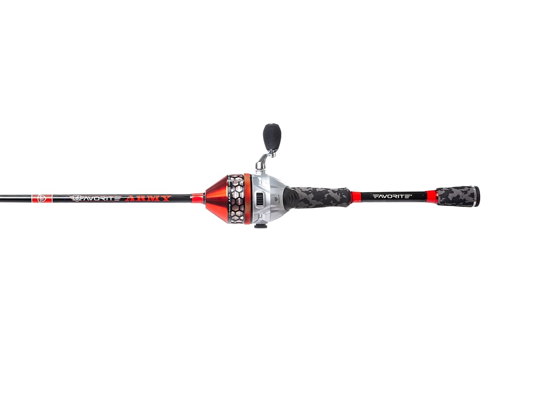 It’s the Favorite Army Spincast Combo, reporting for duty! This perfectly matched pair is a fishing machine. It includes a compact, easy-to-use reel with a 2+1 bearing system and a 4:1 gear ratio. The rod in this combo is lightweight fiberglass, 6′ 0″ long, with a medium action—it’s a perfectly balanced rig that feels right in your hand. The extreme simplicity of a spincast reel is a huge benefit to novice anglers—compared to spinning and baitcasting rigs, this sweet rig is way easier to use. Gear up and go fishing with this fun, low-priced rig!