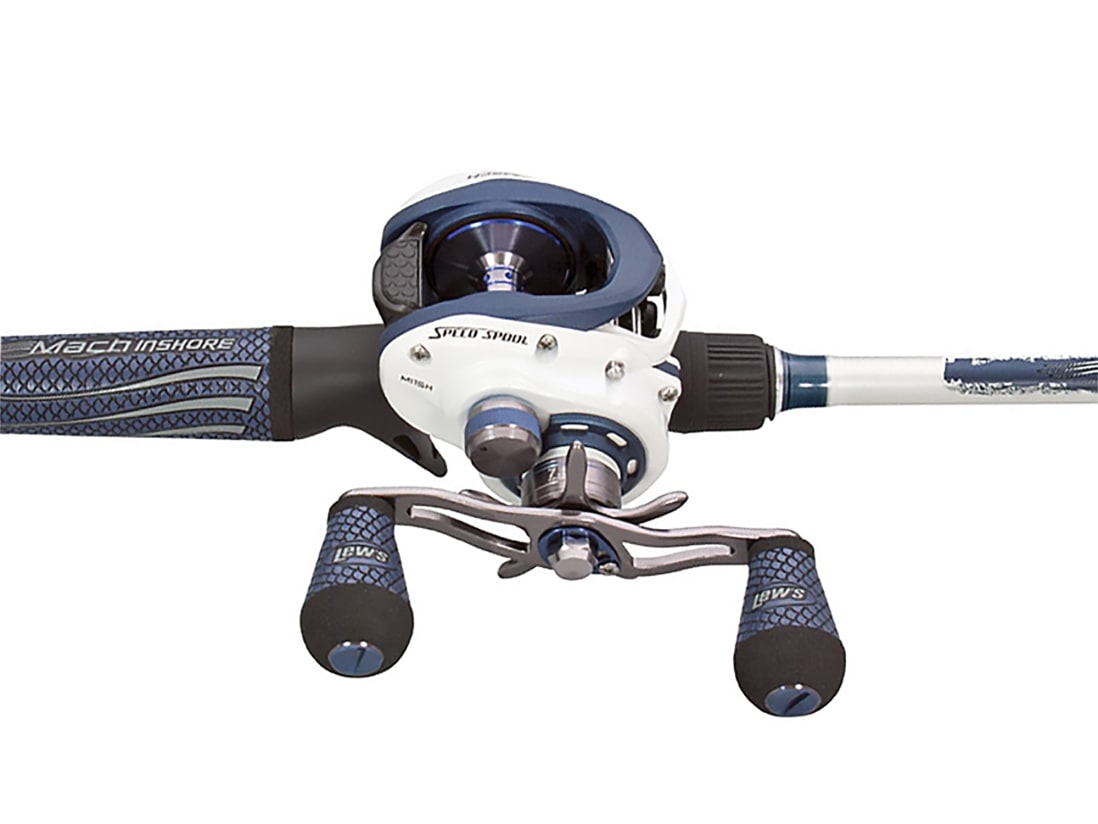 The Lews Mach Inshore SLP Baitcasting Combo is a saltwater and freshwater casting rig that gives you great performance at an affordable price. The reel features a one-piece lightweight SLP graphite frame; a machine forged, anodized, aluminum spool; and a low-profile, ergonomic shape. It’s got a silky-smooth feel when you turn the crank, thanks to 7-premium stainless-steel bearings, and you get a tunable braking system and adjustable cast control. The rod, carefully chosen for this combo by the experts at Lews, features a one-piece IM8 blank. Line shoots through the Microwave Guides with ease, so you can make long, accurate casts. When you choose Lews Mach Inshore SLP Baitcasting Combo, you get high-end performance and proven reliability at a price that won’t blow your budget. Add this rig to your collection today!